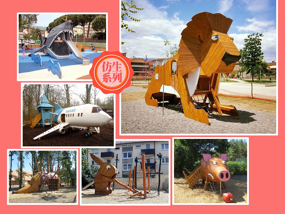 有趣仿生項目采用抽象仿生概念進行項目設(shè)計。有趣仿生項目中間設(shè)置多種可以讓孩子們在上面進行嬉戲玩耍的不同環(huán)節(jié)。更多的日常物種被人為地仿制,并相應(yīng)的夸張?zhí)幚?,讓每個看到的人都眼前一亮,隨之而來的是快樂的笑容。