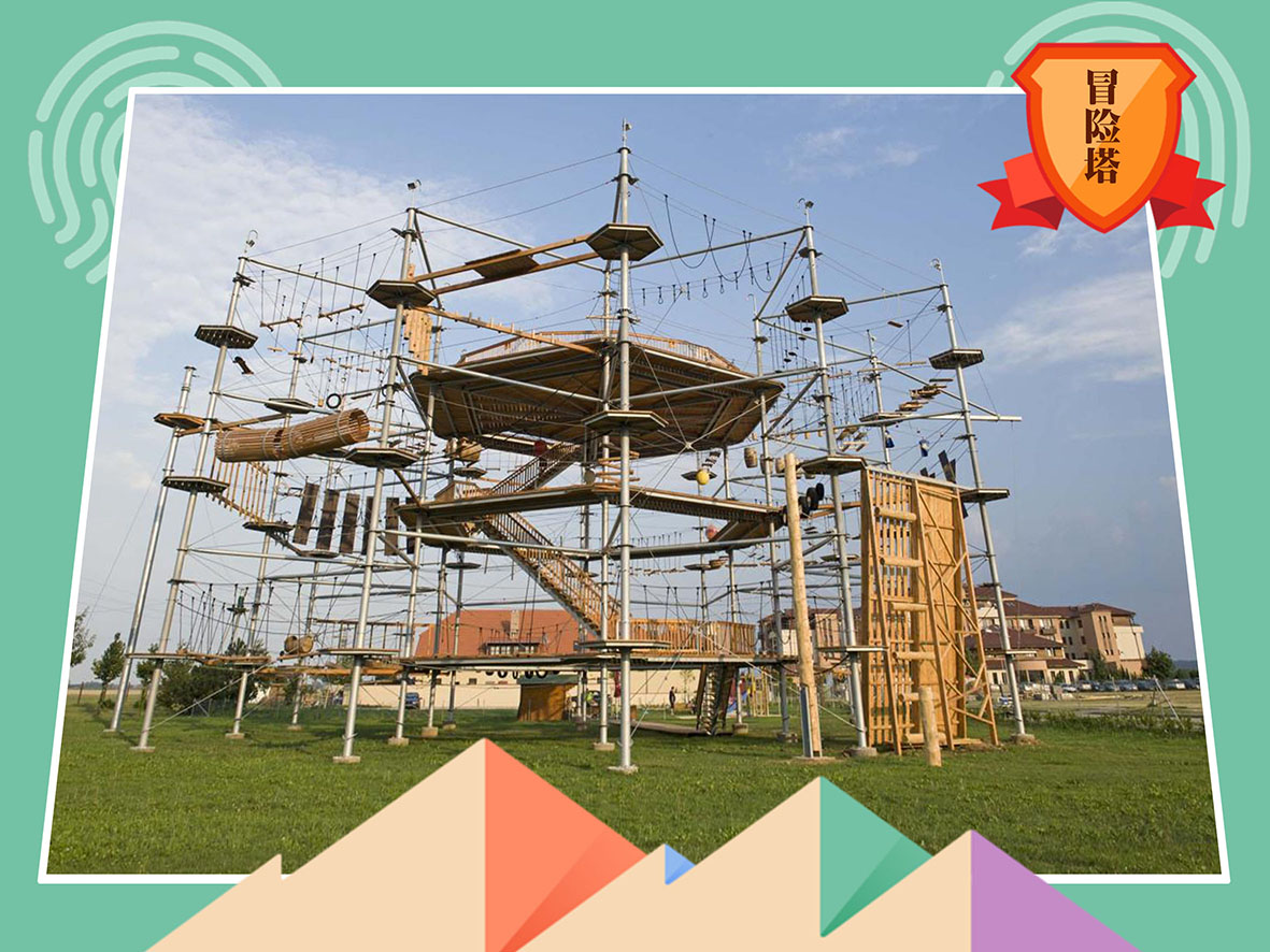 冒險塔也稱之為攀爬塔,人們很自然地想爬上一些東西,每個人勇氣的高低往往決定了挑戰(zhàn)的難度。攀爬的過程是提升決策能力、注意力、訓(xùn)練空間感、建立自信心的過程。攀爬塔項目設(shè)置了不同層面高度的項目,有效的利用場地空間,非常適合納入場地設(shè)計的規(guī)劃考慮。